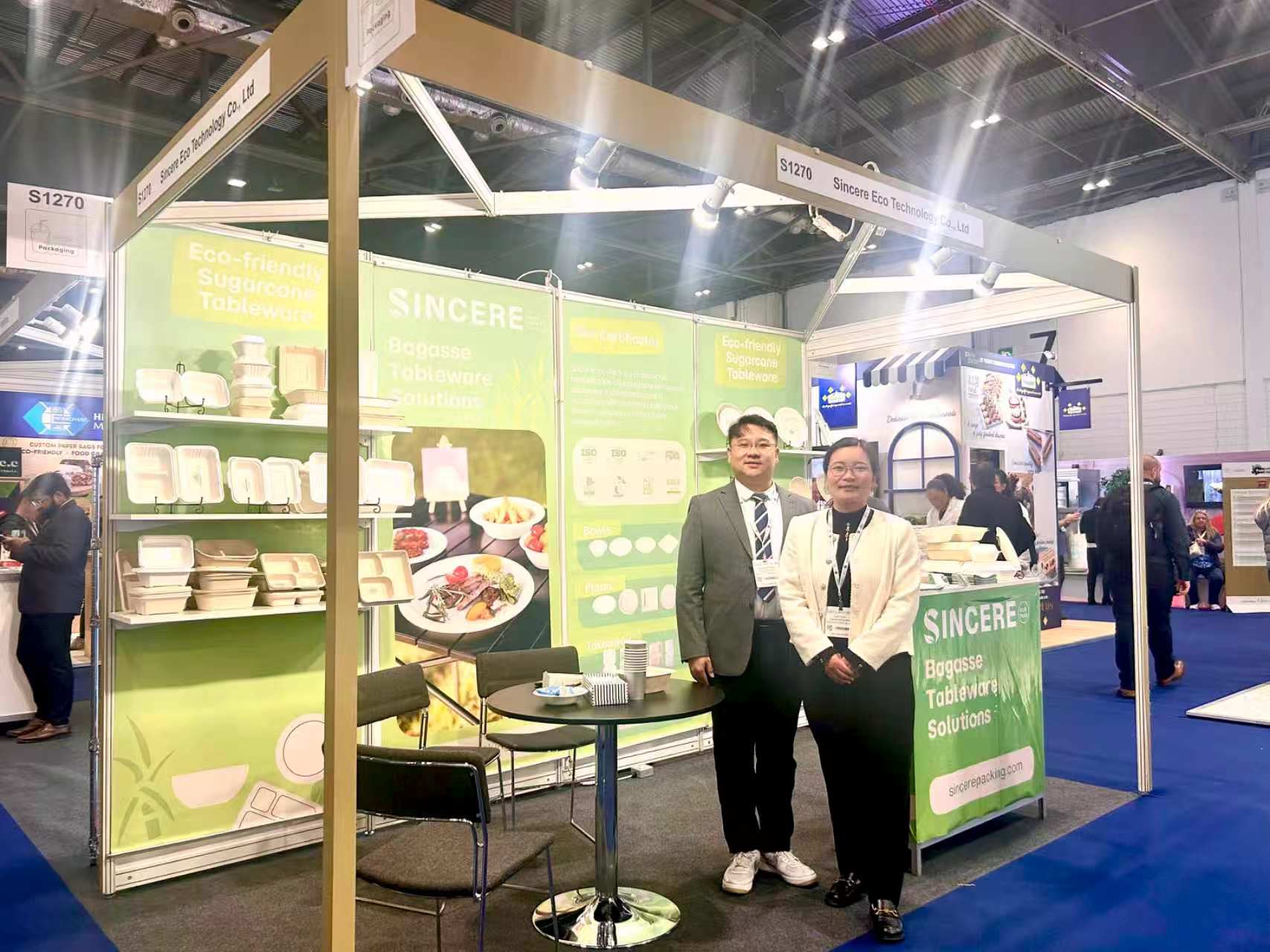 In response to the increasing demands for product quality in the UK market, Sincere Eco Tech highlighted its fully biodegradable plant fiber eco-friendly tableware at the show. This series of products utilizes a new process, with targeted optimizations in key performance aspects such as oil resistance, water resistance, heat resistance, and structural stability, resulting in more stable performance in real-world applications.